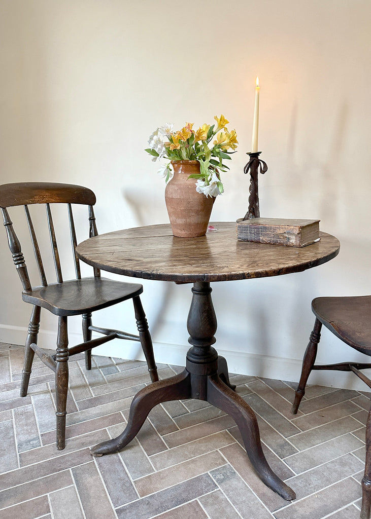 Full of vernacular charm, this antique table makes a lovely addition to any country kitchen, used in an entryway or even placed next to a fireplace during the colder months!