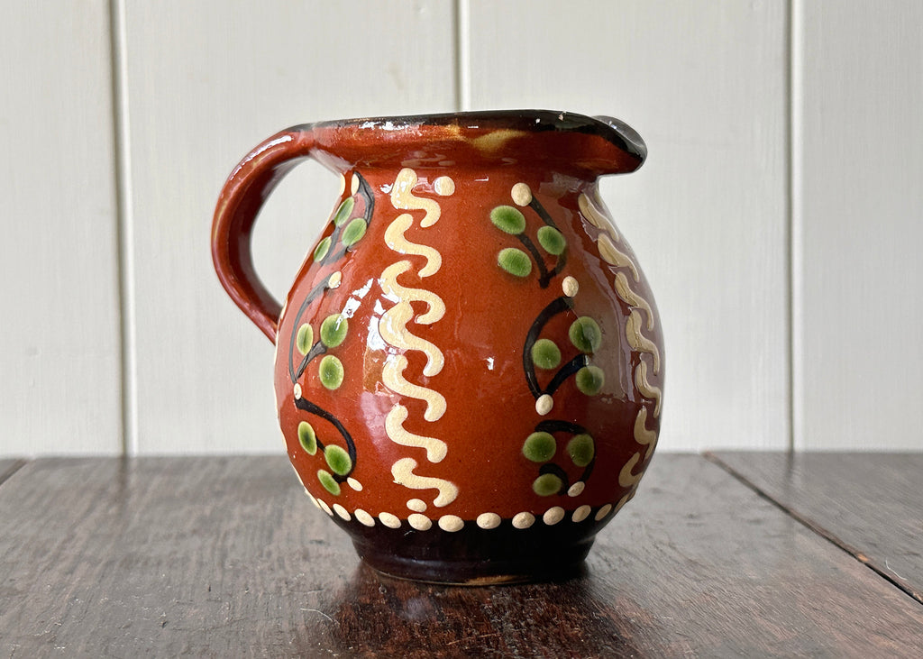 Handcrafted from clay, this beautiful little milk creamer has a bold Troyan Ware glaze and it is in very good condition.