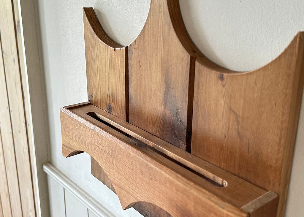 A beautiful addition to any home and perfect for hanging in a kitchen- this contemporary spoon rack has been created out of old pine and holds three sycamore cawl spoons.