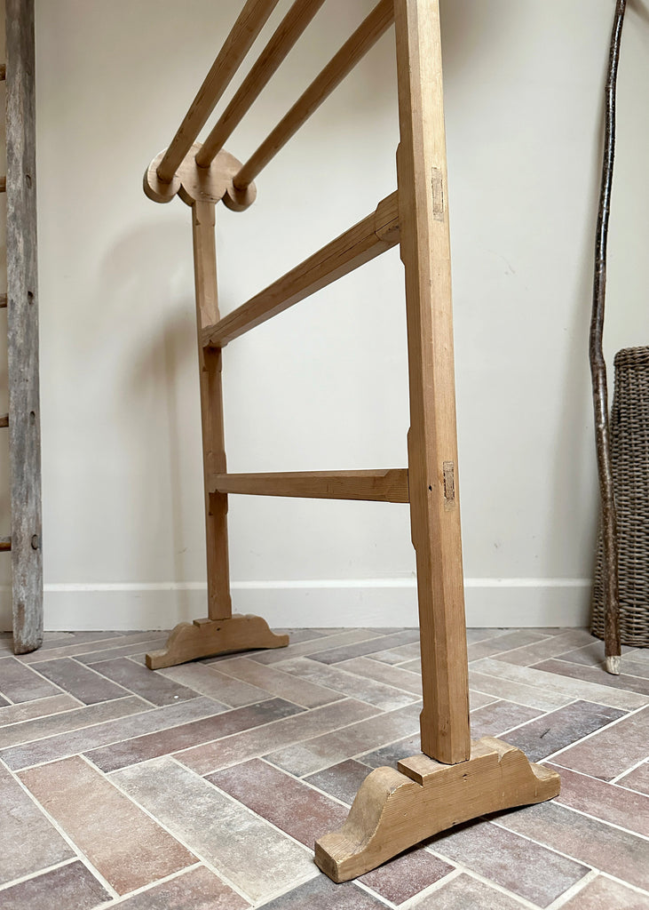 In very good condition, this Edwardian towel rail is ever-so useful- crafted out of pitch pine, which has developed a subtle patina over the years.