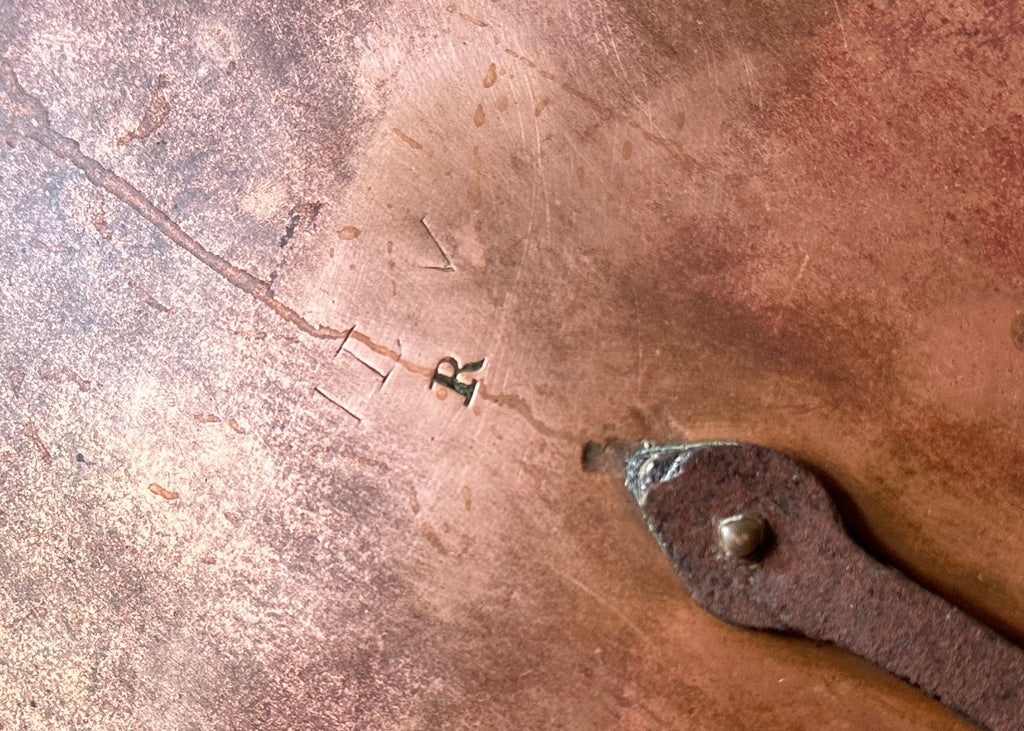 Circa late 1860s, this beautiful French pan lid is made of copper which has developed a striking patina from many years of use- the top is stamped with V & R.