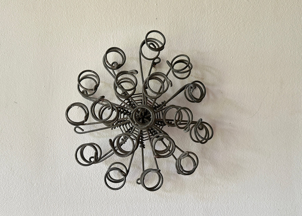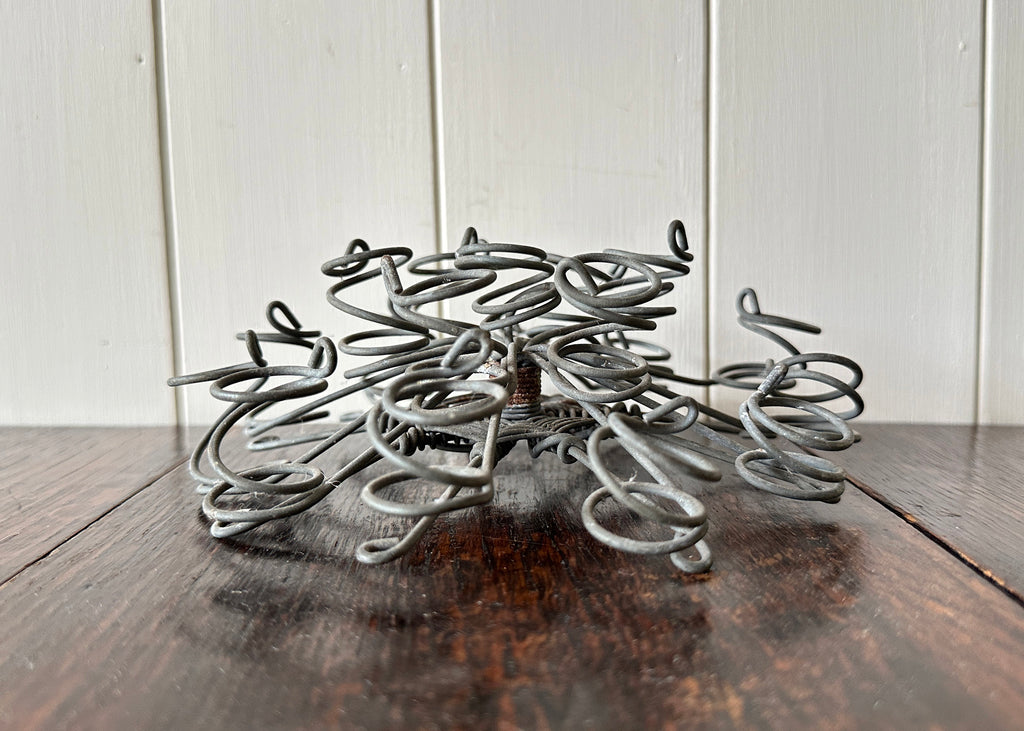 Circa 1930, this antique french flower holder has 18 individual coiled hoops to hold each stem- ensuring there is a beautiful display of flowers whilst inside a vase.