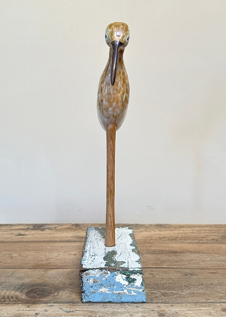 This beautiful sculpture has been hand carved out of sycamore wood and depicts a detailed curlew, sat upon a reclaimed pine base.