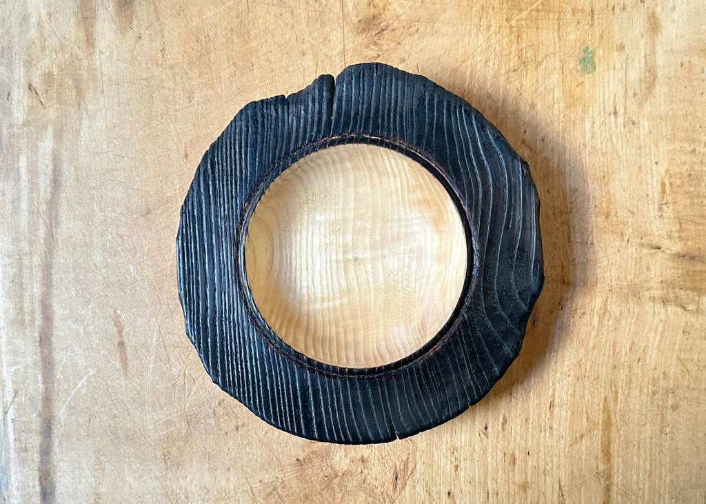 Crafted from English Ash Wood, this unique shallow bowl has a wide lip which has been charred, really emphasising the beautiful grain.