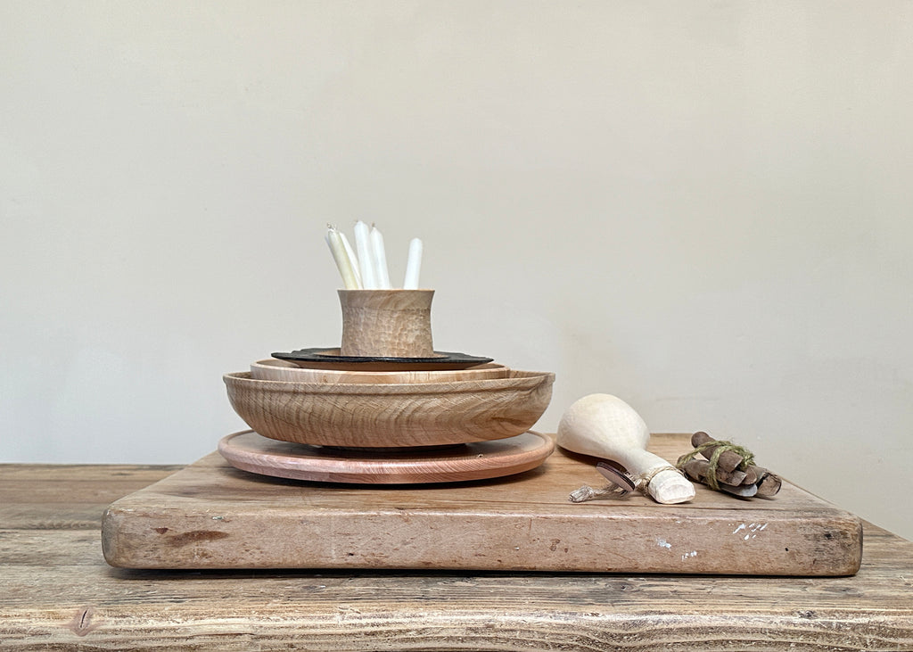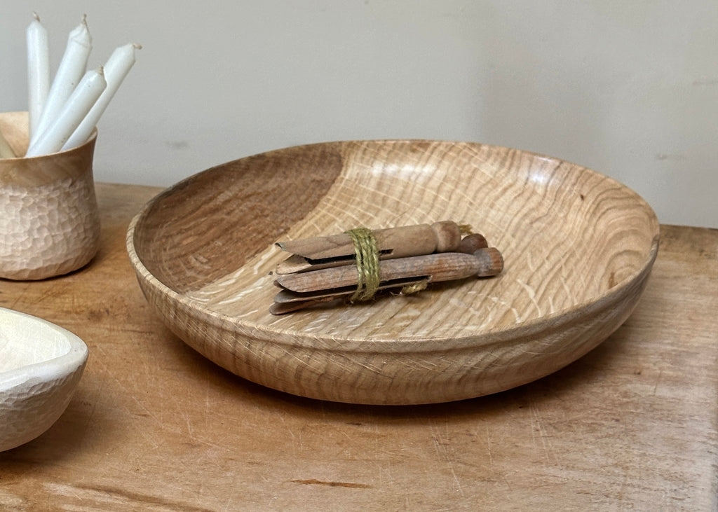 Crafted from English Oak Wood, this unique shallow bowl has a slim lip, raised base and beautiful tactile finish.