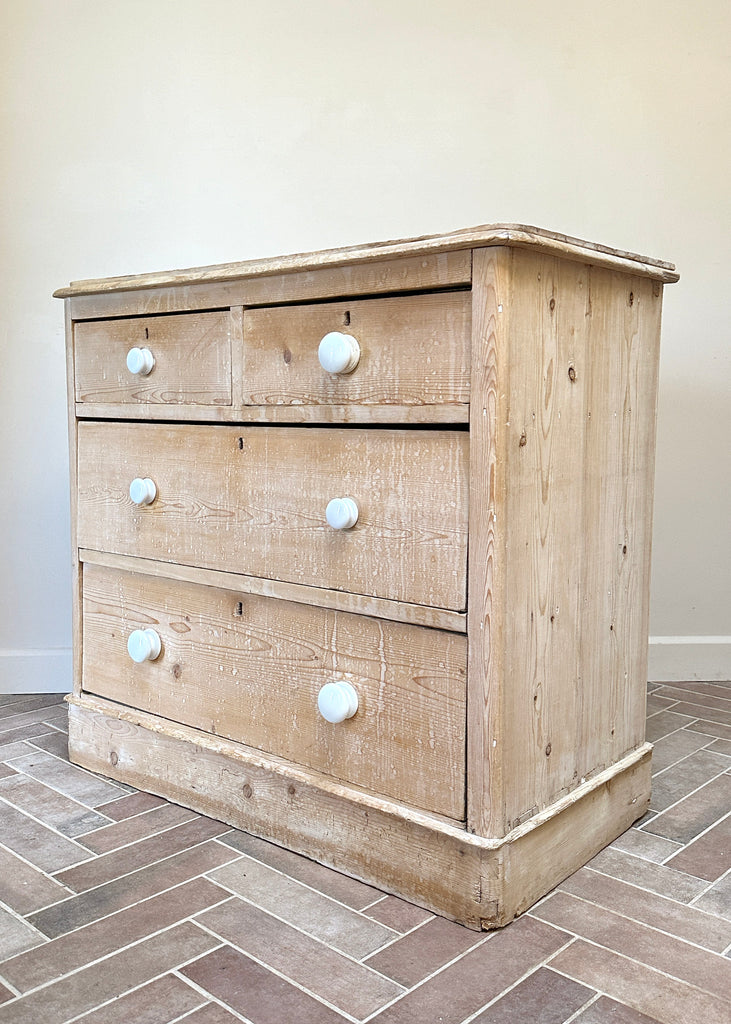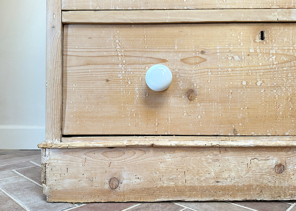 A beautiful piece, these antique 2 over 2 drawers have been handmade out of pitch pine, have mis-matched ceramic knobs and dovetail jointed sides.